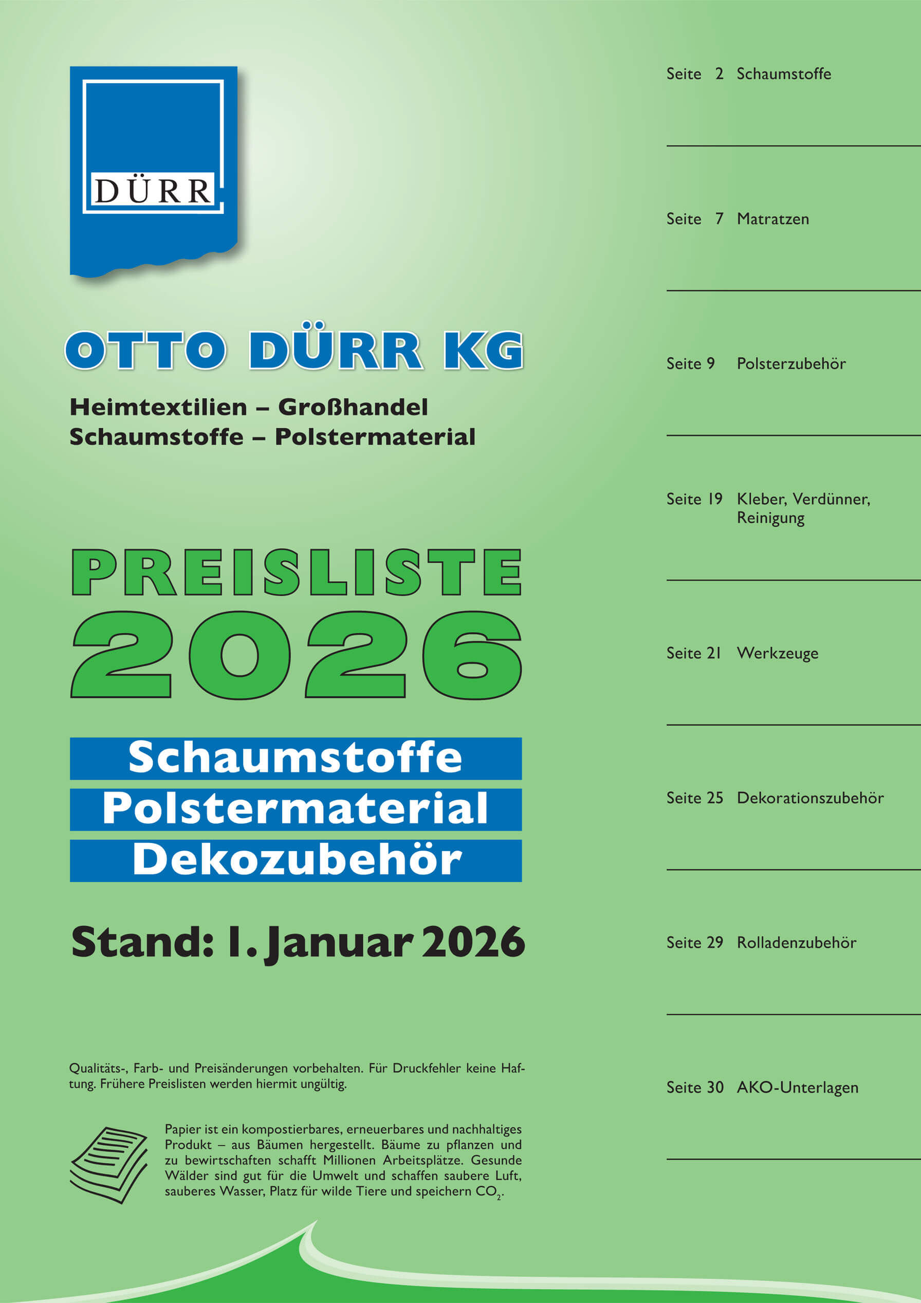 Unsere Preisliste für alle Schaumstoffe, Polstermaterialien, Dekozubehör und Kunstleder.