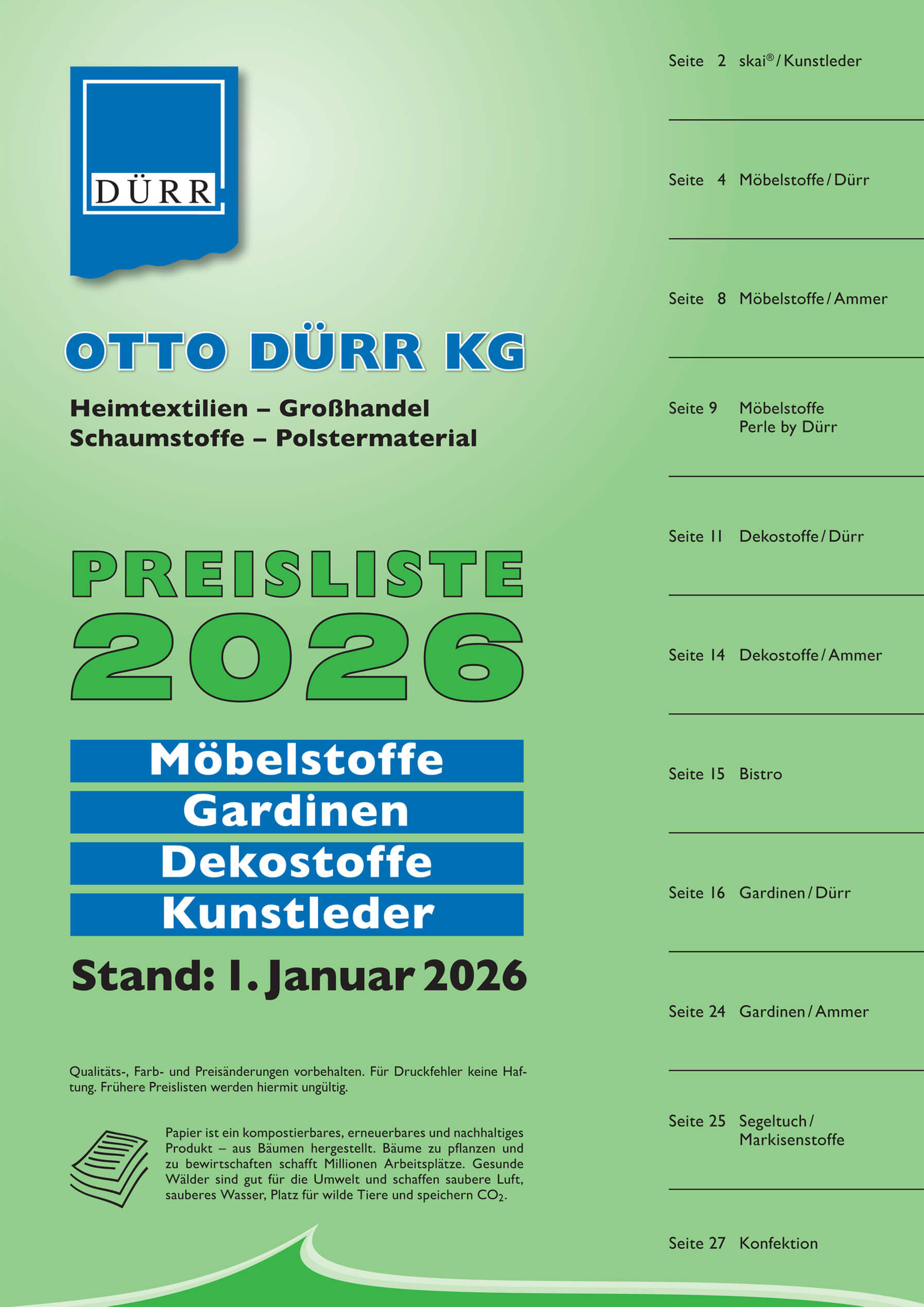 Unsere Preisliste für Möbelstoffe, Gardinen, Dekostoffe und Kunstleder.